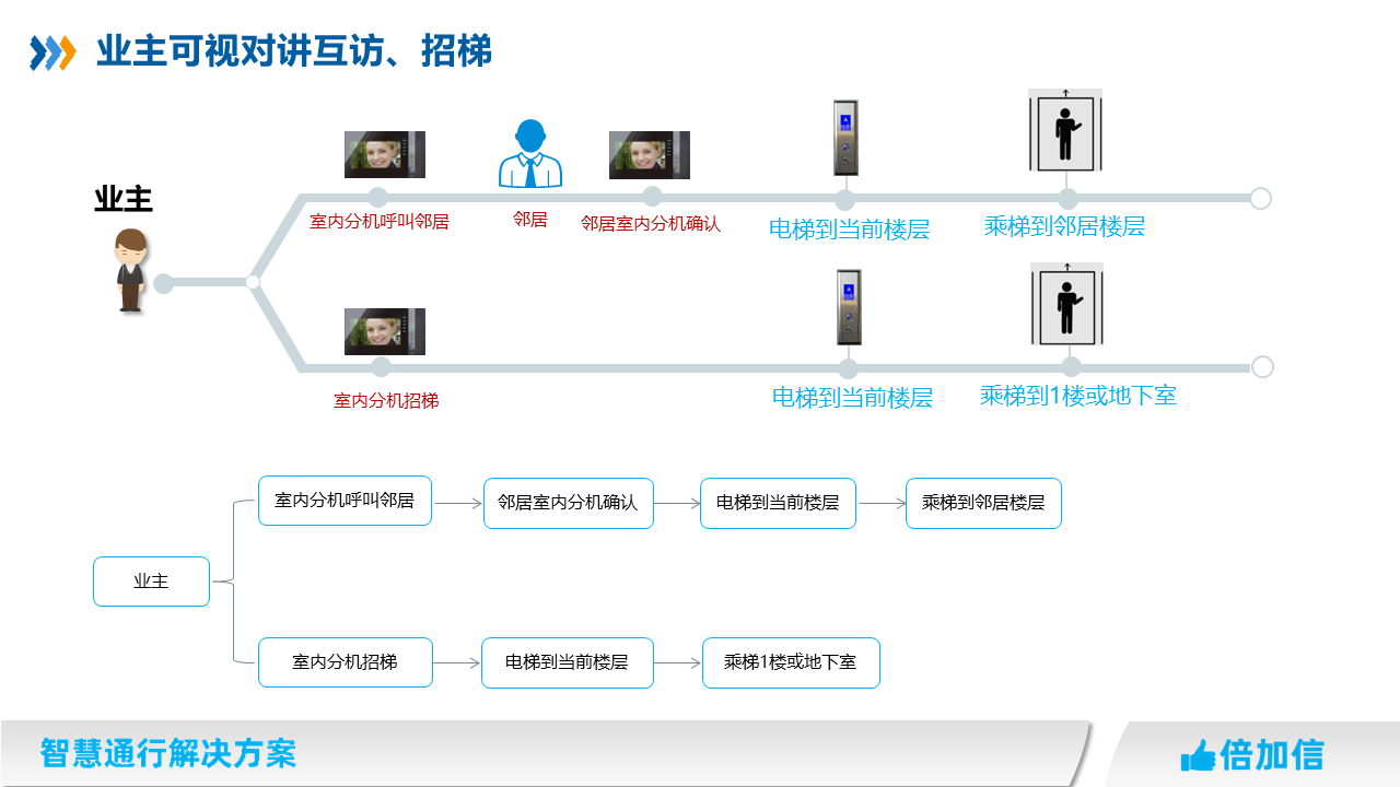 5、住宅項目訪客可在可視對講呼叫業主,實現呼梯聯動招梯和乘梯;